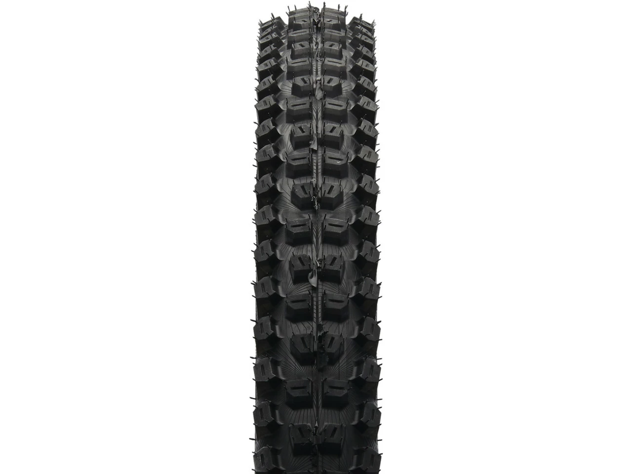 Die Downhill-Karkasse besteht aus sechs Lagen Karkassenmaterial unter der Lauffläche und vier Lagen an den Seiten, die Apex-Einlage über dem Wulst verringert das Risiko von Durchschlägen. Ein kreuzgewebtes Nesselband über dem Reifenfuß schützt zusätzlich Reifen und den Felgenbereich.