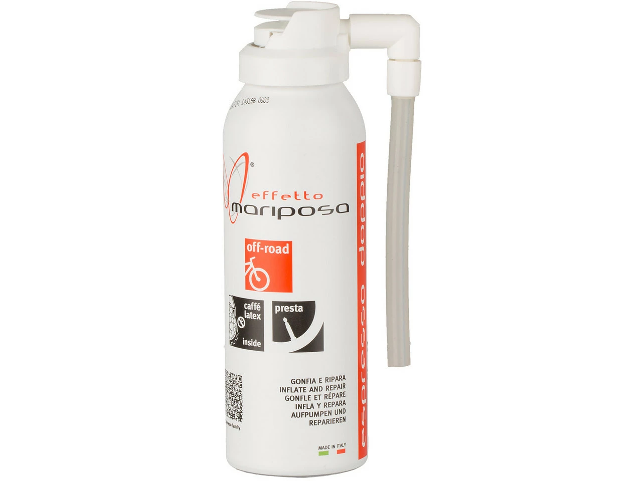 Features:superschnellverschließt Löcher bis zu 1 mm in weniger als einer Minuteperfekte, einfache Handhabungfür alle Reifentypen mit und ohne Schlauchpassend für Presta-Ventileohne Ammoniak100 % reifen- und felgenfreundlichreicht für einen ReifenHaltbarkeit 1 JahrHerstellernummern:75 ml:ESP75125 ml:ESP125Lieferumfang:1 x Pannenspray Effetto Mariposa Espresso